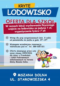 Cennik, pełna oferta i godziny otwarcia w sezonie 2025/2026 dostępna jest na stronie: https://www.facebook.com/p/Kryte-Lodowisko-Mszana-Dolna-61569564735968/