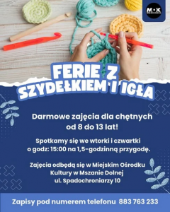 - Miejski Ośrodek Kultury zaprasza na „Ferie z szydełkiem i igłą”: