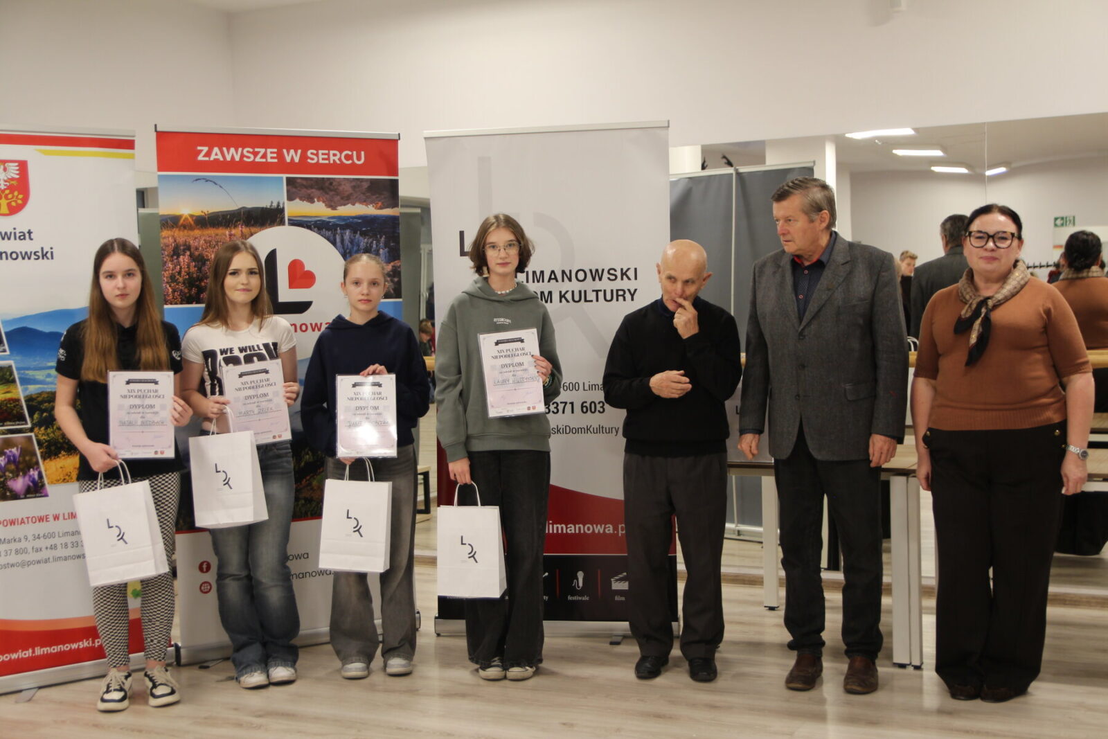 Wręczenia nagród dla uczestników turnieju dokonali Leszek Mordarski – Przewodniczący Rady Miasta Limanowa, Magdalena Szczygieł-Smaga – Dyrektor Limanowskiego Domu Kultury oraz Ryszard Ewert.
