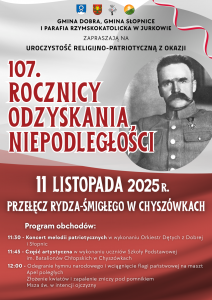 5. Gmina Słopnice, Gmina Dobra oraz parafia rzymskokatolicka w Jurkowie, zapraszają na uroczystość religijno-patriotyczną z okazji rocznicy odzyskania niepodległości przez Polskę, która odbędzie się 11 listopada 2025 r. na Przełęczy Rydza-Śmigłego w Chyszówkach.