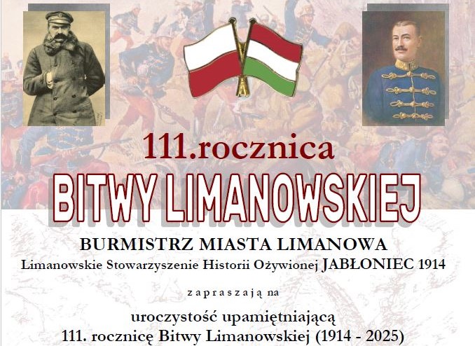 Burmistrz Miasta Limanowa oraz Limanowskie Stowarzyszenie Historii Ożywionej Jabłoniec 1914 zapraszają mieszkańców i gości na uroczystość upamiętniającą 111. rocznicę Bitwy pod Limanową.